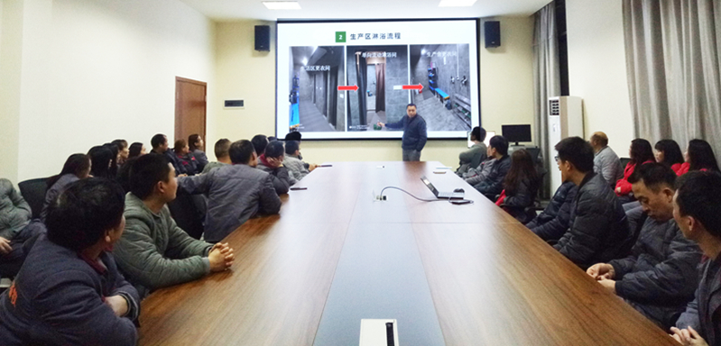 防疫是重中之中”!為確保公司生物安全,69畜牧狠抓防疫工作,新年伊始就在全公司各基地及后勤管理部門分批次開展生物安全培訓,會議由羅宗剛博士主持授課,將豬場生物安全防控知識教授給公司每一位員工,確保公司全員樹立正確的生物防控意識,將生物防控措施嚴格執行到位。