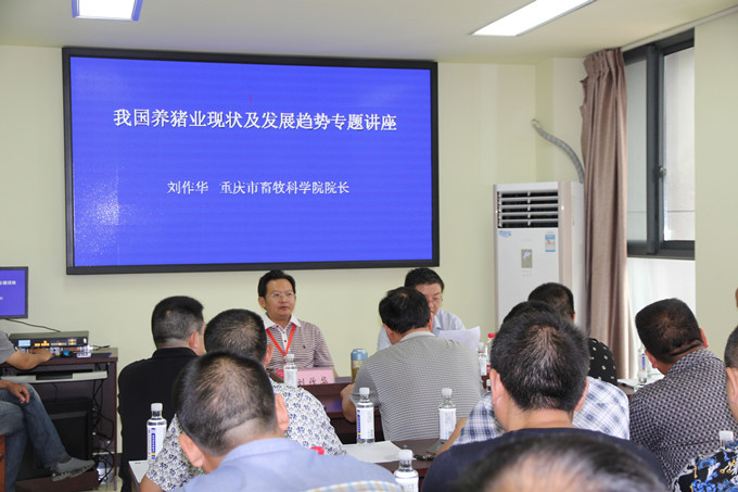 2015年6月25日,國家生豬產業技術體系崗位科學家、重慶市畜牧科學院院長劉作華研究員帶來了“我國養豬業現狀與發展趨勢”的主題報告,開啟了69養豬學堂的第一講,重慶市69原種豬場以及來自黔江區的70余名畜牧工作者參加了首場培訓會。