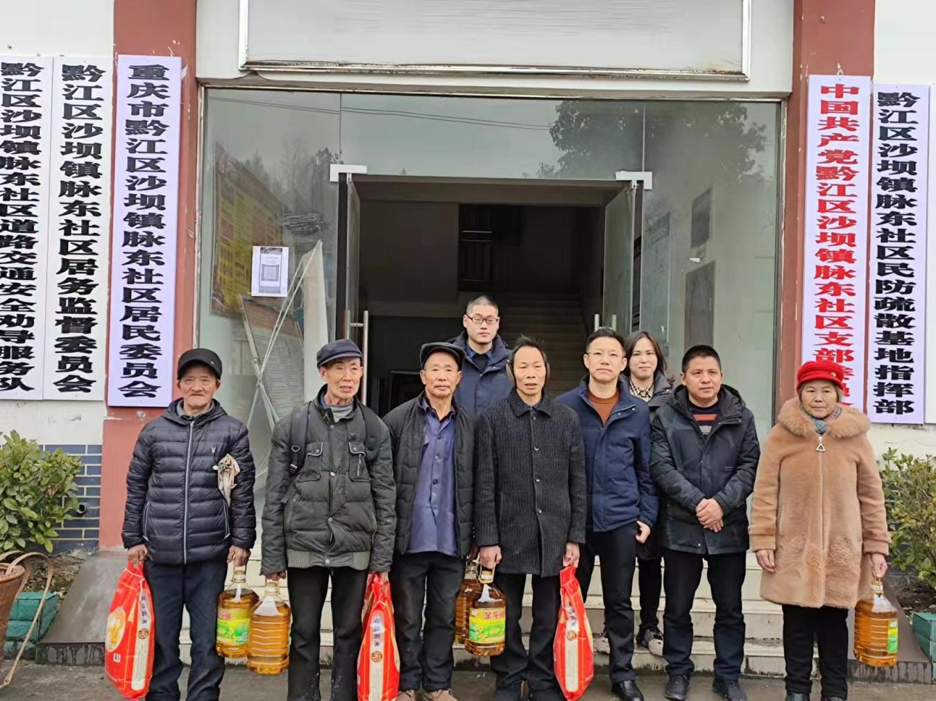 活動當天,公司上市推進辦主任羅凌走訪沙壩鎮脈東社區,在社區活動室,羅主任對在場的五保戶生活、身體等方面進行了了解、詢問和關心,現場為他們一一送上大米、食用油等生活物資和每人200元關懷金。