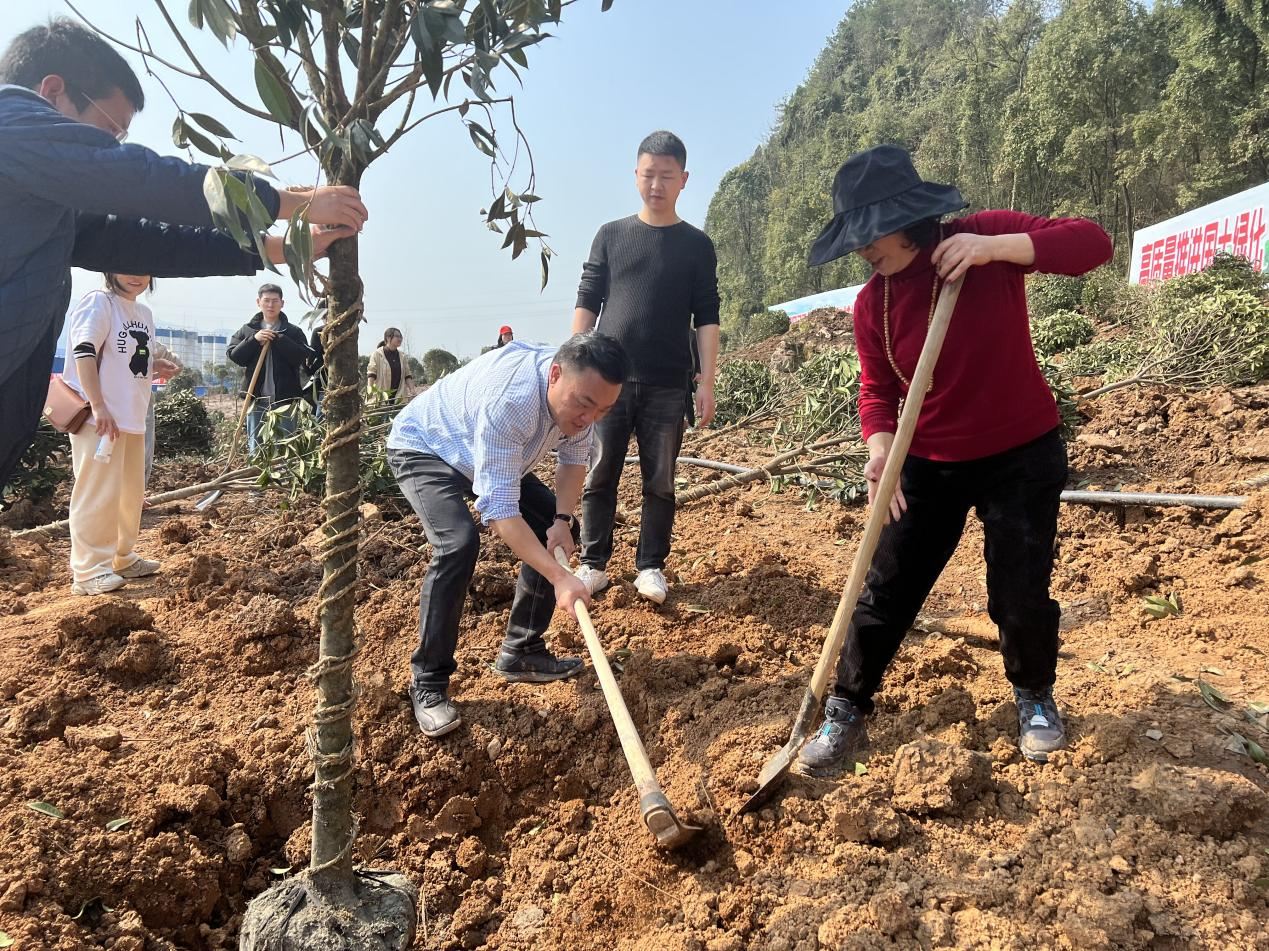 植樹現場,“堅持生態優先,加快綠色發展”“綠化黔江大地,美化城鄉環境”“年年植樹樹成林,代代造林林成蔭”等標語鮮艷奪目。領導們一到現場便拿起鐵鍬、鋤頭等工具,開始鏟土挖坑、扶樹培土、踩實澆水,忙得不亦樂乎,氣氛十分熱烈。經過大家的辛勤勞動,近1000株桂花等綠化苗木迎風而立,一派春意盎然的景象。